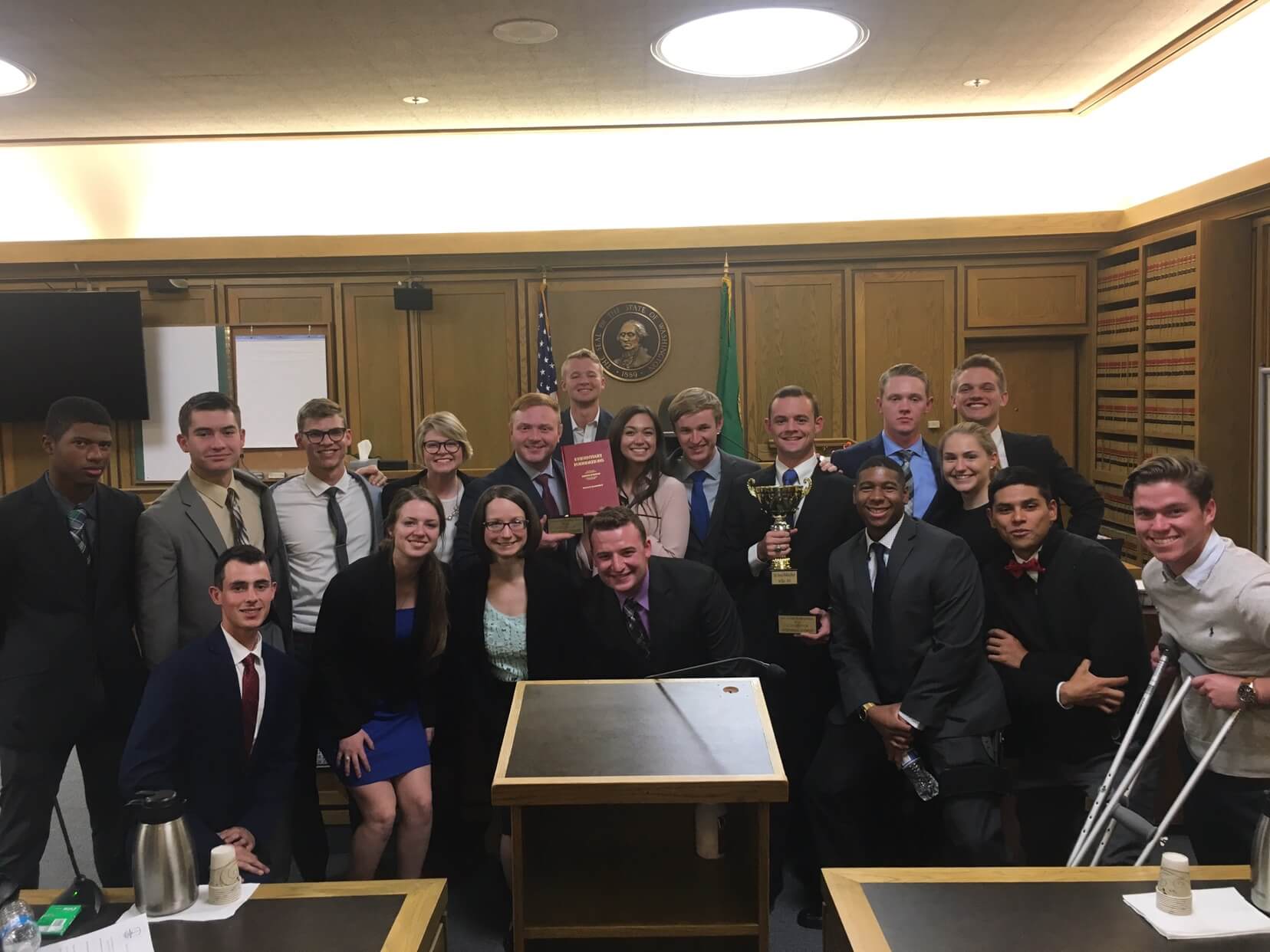 The contest pitted the teams against each other to argue a civil negligence case for the defense and plaintiff, with each team presenting their case to the mock trial judges during four trials at the competition.